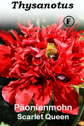 Ein seltener, alter, scharlachroter Päonienmohn mit großen Blütenkugeln. Durch seine geschlitzten und gefransten Blütenblätter und der leuchtenden Farbe ergibt sich ein feuriges Aussehen im Beet. Ideal in Kombination mit weißen Blüten.