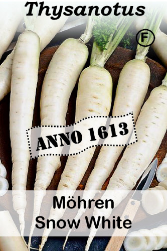 Diese schneeweiße, 20 cm lange und dicke Möhre war seit vielen Jahren nicht mehr im Handel. Jung geerntet sehr lecker und voll ausgereift für Futterzwecke mit sehr hohem Ertrag, gute Lagerfähigkeit.