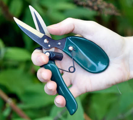Als einzigartige tragbare Schere bietet diese ergonomische Ausputzschere hervorragenden Komfort, Grip und Steuerbarkeit. Hochwertige Scherenaktionsklingen behalten ihre Vorteile bei längerem Gebrauch. Die Zeigefingerschleife verbessert die Kontrolle und Stabilität erheblich, während sich die ergonomische Form bequem in die Handfläche schmiegt. Dieser Ergo Deadheader wird von der Royal Horticultural Society unterstützt und trägt eine zehnjährige Garantie. Für Rechts- und Linkshänder geeignet.