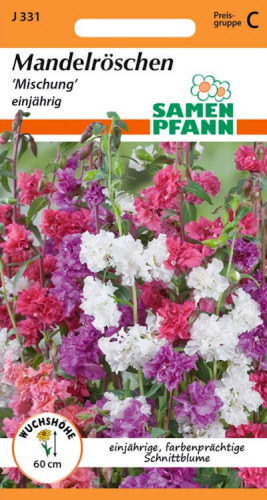 Einjährige, wunderschöne, farbenprächtige Schnittblume, reich blühend mit vielen kleinen röschenförmigen, dicht gefüllten Blüten.