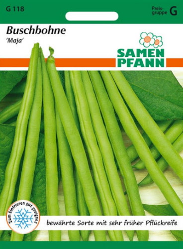 Sehr frühe Pflückreife, reich tragend. Bildet 18-20 cm lange, zarte, runde, fadenlose, dunkelgrüne Hülsen. Aufrechter Wuchs mit frei hängenden Hülsen, dadurch leichte Ernte.