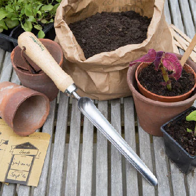 Dieses einzigartige kleine Werkzeug lässt sich am besten als eine Mischung aus Kelle und Dibber beschreiben und hat die perfekte Größe und Form für alle Arten von Schuppenarbeiten. Es eignet sich hervorragend, um Pflanzen aus Töpfen zu holen, und ist auch sehr praktisch, wenn Sie Samen säen und Sämlinge pflanzen.