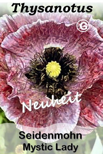 Ein besonders eindrucksvoller Seidenmohn in einer mystischen Farbkombinationen aus Burgunderrot und Grautönen mit hellen Blütenrändern mit mauvefarbenen Streifen. In großen Töpfen und im Beet eine magische Erscheinung. Bienenfreundlich.
